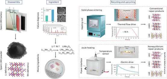 In summary, at the material level, Ji et al. applied the instant Joule heating technique to upcycle S-LMO, significantly improving the electrochemical performance of the repaired materials by introducing structural defects. Building on this foundation, they provided a comprehensive blueprint for the entire solid-phase recycling process, thereby establishing a foundational paradigm for future battery recycling. At the application level, the integration of advanced technology in this work has substantially minimized resource waste, shortened repair time, and enhanced overall efficiency. With further refinement, this recycling paradigm is expected to offer considerable benefits for future industrial-scale implementation.